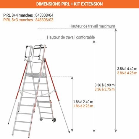 – Pour des travaux ou interventions à grandes hauteurs, jusqu’à 4.49m.