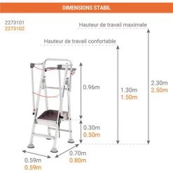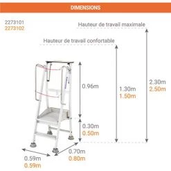 TUBESCA COMABI Escabeau De Rayonnage De 1 Marches. Hauteur Atteignable De 2.30m. – 2273201/ALU