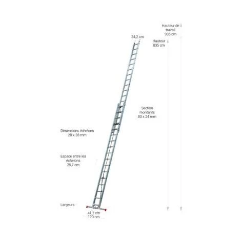 - Échelle Coulissante à corde 2 plans 2×17 échelons, V16034, Escalux