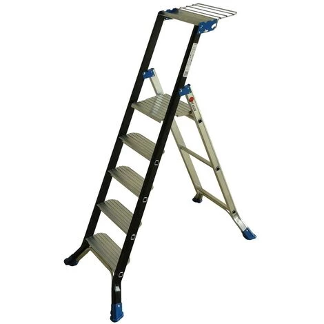 Escabeau en aluminium 5 marches spécial bati-matériaux marches XXL – Escabati, V21015, Escalux