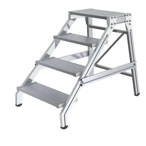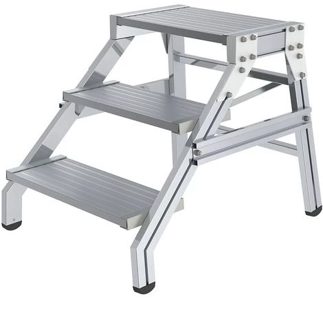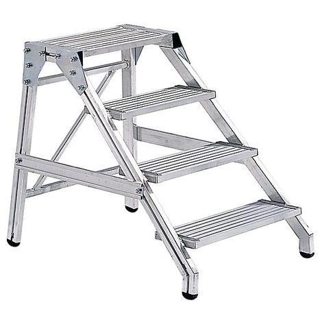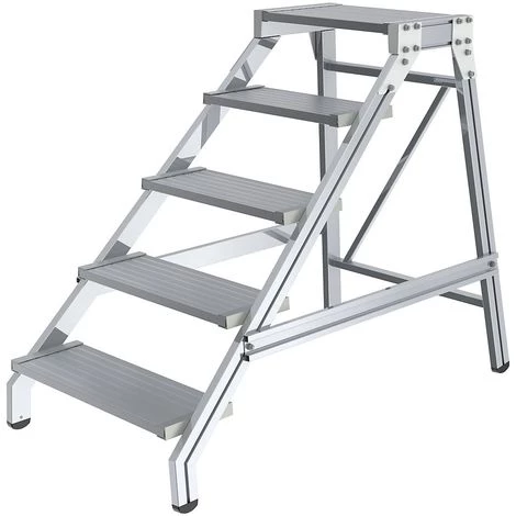 Largeur h.t.: 670 mm, Profondeur h.t.: 1230 mm, Poids: 15 kg, Largeur plateforme: 500 mm, Hauteur plateforme: 1000 mm, Profondeur des marches: 200 mm, Charge max.: 300 kg, Profondeur de la plateforme de pesée: 300 mm, Livraison: Démonté, Accès: unilatéral, Matériau du piétement: Aluminium, Type d’échelle: Marche, Prix par: Pièce, Matériau marches: Profilé en aluminium