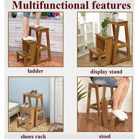 Ce tabouret escabeau multifonctionnelle à 3 niveaux est fabriquée en bois de pin respectueux de l’environnement et durable, vous offrant beaucoup de confort dans la vie. Le marchepied échelle dispose d’une fonction pliable qui est pratique pour le rangement et le transport. Vous pouvez utiliser le marchepied Nciht seulement comme échelle pour atteindre des objets en hauteur, mais aussi comme tabouret, support de pot de fleurs et petite table basse. Peu importe que vous placiez le marchepied sur le couloir, dans le salon ou le balcon, notre marchepied peut couvrir votre usage quotidien.