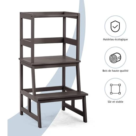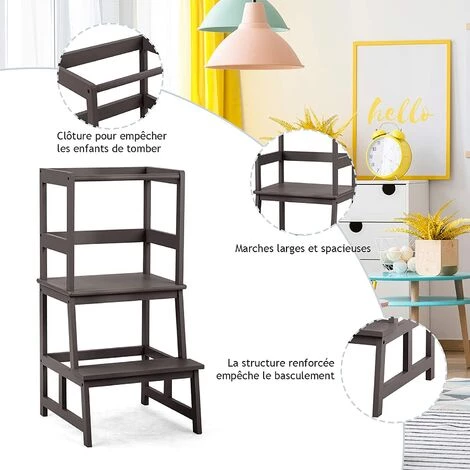 Comme aide pratique au quotidien avec un enfant la tour d’apprentissage/observation garantit une stabilité à toute épreuve. Le tabouret a été ainsi conçu pour rapprocher votre enfant lors de vos tâches en cuisine ou l’installer à table et pour ainsi interagir avec lui très tôt et lui apprendre des choses. Conception élaborée, protège pleinement la sécurité de votre enfant.