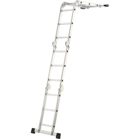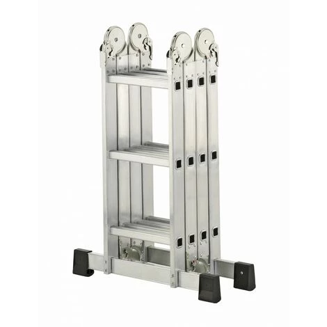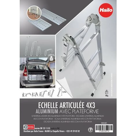 Echelle articulée simple et rapide d’utilisation – mutlipositions Utilisable en échelle simple / double en débord de toit avec plateforme pour une utilisation en plateforme de travail Avec 2 bases rapportées pour plus de stabilité Conforme aux exigences de la Norme EN 131 Garantie 2 ans