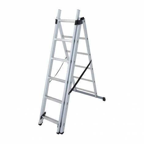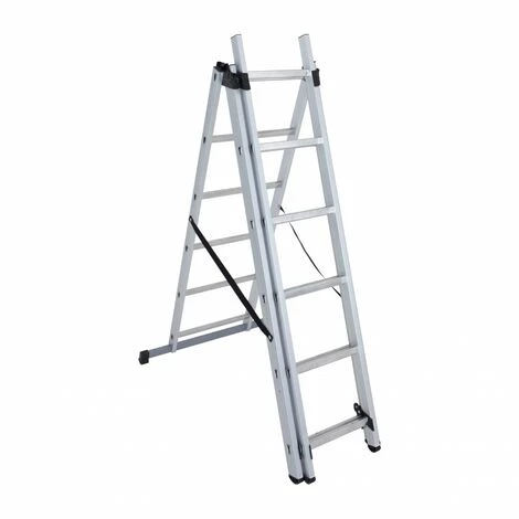 Hauteur max d’accès : 4,46 m, hauteur max déployée : 3,36 m. Utilisation en échelle simple, double ou en échelle chevalet. Conforme aux exigences de la Norme EN 131, garantie 3 ans. Fabrication Française