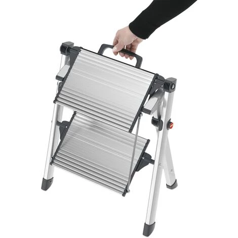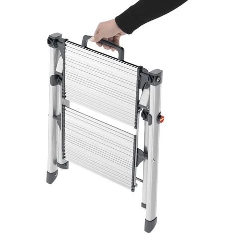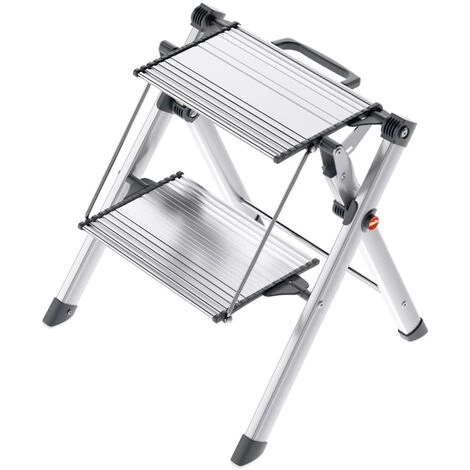 L’escabeau compact et petit a 2 grandes marches avec un modèle antidérapant et s’adapte dans chaque coin. Les pieds en plastique antidérapants le maintiennent stable sur diverses surfaces comme le parquet, le tapis et les tuiles. L’escabeau se replie à seulement 6,5 cm d’épaisseur, ce qui le rend facile à ranger lorsqu’il n’est pas utilisé. Il est également très pratique à emporter grâce à la poignée de transport pratique, qui contrôle également le mécanisme de pliage.