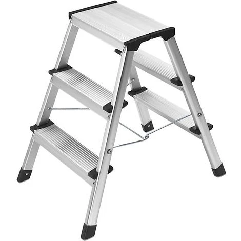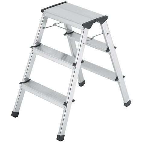 Largeur h.t.: 420 mm, Profondeur h.t.: 650 mm, Poids: 2.7 kg, Hauteur plateforme: 600 mm, Accès: les deux côtés, Utilité: Pour un usage occasionnel, Coloris piétement: Argent aluminium, Matériau du piétement: Aluminium, Pliable: oui, Type d’échelle: Marche, Prix par: Pièce, Matériau marches: Aluminium avec nervures antidérapantes