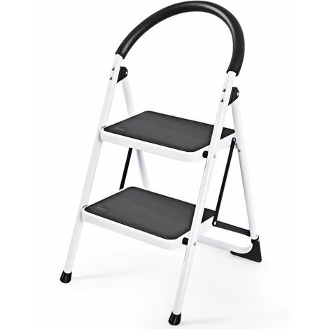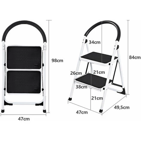 Présentation produit: Escabeau à 2 marches pliant en fer 150kg charge max marchepied avec plate-forme antidérapante hauteur 87cm