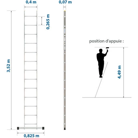 1 échelle de 13 barreaux avec un stabilisateur à monter.