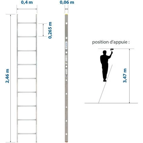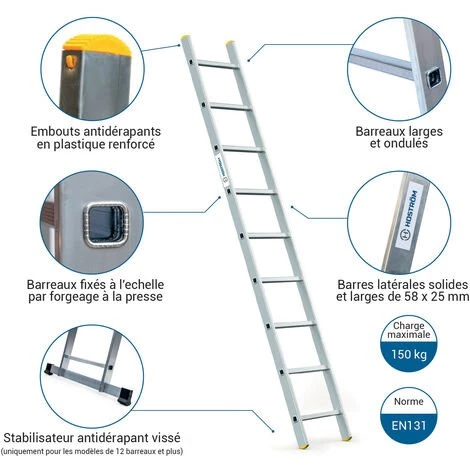 Barres latérales solides et larges : elles assurent un soutien lors de la montée et de la descente de l’échelle.