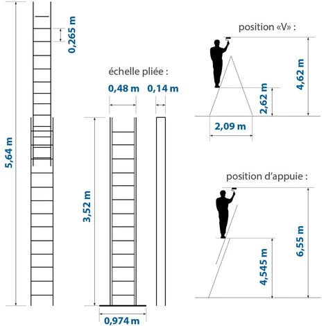 HOSTRÖM Echelle Transformable 2 Plans StablePro, Extensible Coulissante Et En Aluminium, 2×13 Marches, 3 Positions, Hauteur Max 6,55 M, Garantie 5 Ans, Charge Maximale 150kg, Hostrom