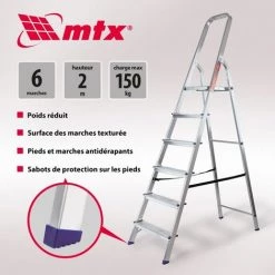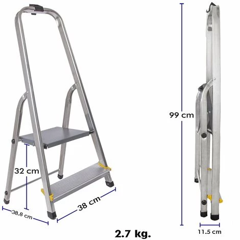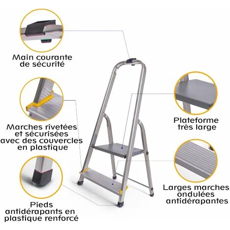 HOSTRÖM Hostrom – Escabeau Dura 2 Marches En Aluminium, Léger Et Pliable, Pieds Antidérapants, Hauteur De Plateforme 32cm, Charge Maximale 150kg