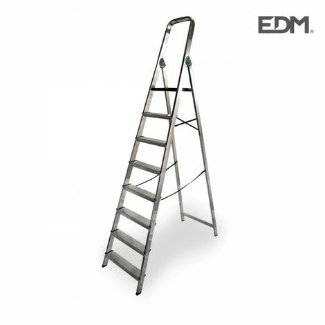 Escabeau domestique aluminium 8 marches derniere marche 1.66m, atteint 3.66m, poids 5.8kg, supporte max.150 kg mesures: 241x53x11cm edm