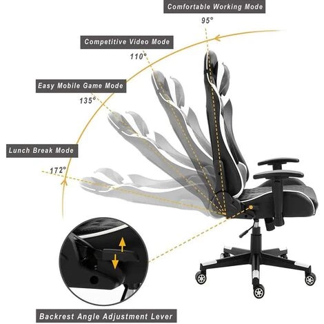 La chaise de jeu est l’accessoire de bureau ultime et s’adapte parfaitement à vos sièges professionnels, est durable et durable. Avec des coussins de soutien comme un vrai siège baquet, votre posture au bureau est parfaite. Siège confortable et ajusté en métal résistant avec du cuir synthétique résistant recouvert de mousse haute densité durable et confortable. Ce bébé vous gardera des années.