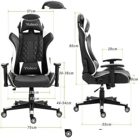 La hauteur totale: 122-130 cm. Hauteur d’assise: 44-54 cm. Largeur du coussin arrière: 48-57 cm. Hauteur dos: 80cm. Conçu pour offrir une combinaison de confort luxueux et de style haute performance. Les sièges de bureau de course offrent un excellent soutien lombaire car leur conception comprend le dossier profond et ajusté traditionnel, les coussins lombaires et cervicaux réglables.
