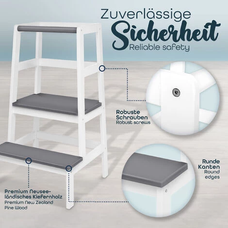 KIDUKU Tour d’apprentissage en bois | Escabeau pour les enfants à partir de l’âge debout | Tour d’apprentissage pour une sécurité maximale | Tour d’apprentissage pour filles et garçons