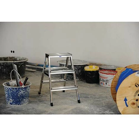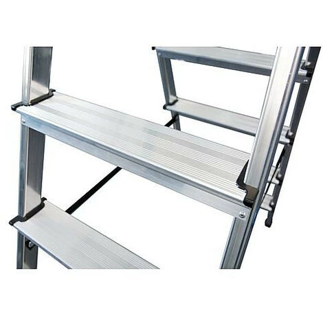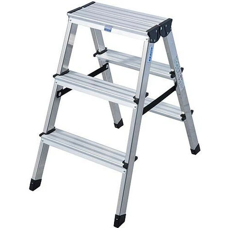 Marches profilées, profondeur 80 mm Avec deux sangles de sécurité Montants solides en tube d’aluminium rectangulaire Pliable, gain de place (160 mm) Raccords marches/montant rivetés plusieurs fois Pieds avec capuchons antidérapants Hauteur de travail max. (m) : 2,40 Hauteur (m): 0,40 Nombre de marches : 2 x 4 Dimensions de montage (L x l x H): env. 950 x 450 x 160 mm Poids (kg): 3,5