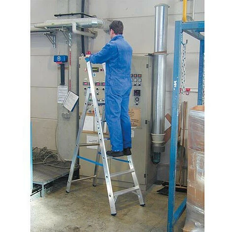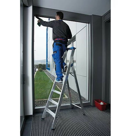 Marches en alu profilé, 80 mm de profondeur, solidement serties aux montants