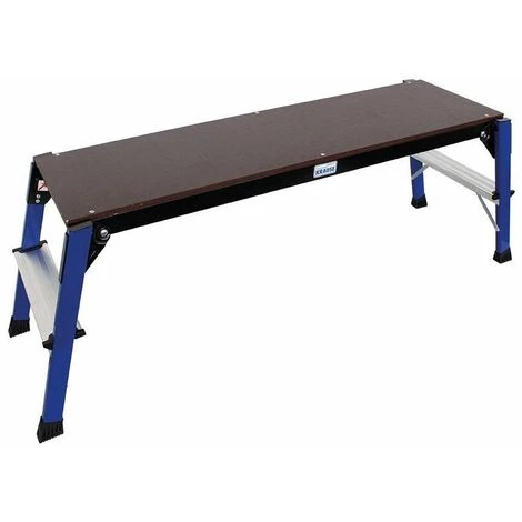 La plate-forme de travail Step Top stable en aluminium est pliable.- idéale pour les travaux à l´intérieur, pour une hauteur de plafond jusqu´à 2,50 m- verrouillage de sécurité des deux côtés empêche le repli involontaire- liaison échelon/montant robuste à rivetage multiple avec quatre traverses angulaires supplémentaires- grands sabots antidérapants pour un maintien sûrLa plate-forme se range rapidement et de façon peu encombrante. Le plancher en aggloméré antidérapant plastifié en résine phénolique mesure 1090 x 300 mm.