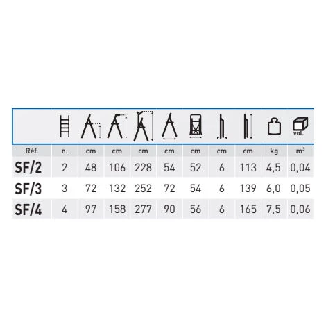Ce marchepied de 2 marches est un matériel incontournable à avoir chez soi, dans un atelier ou dans un magasin. Il permet d’atteindre une hauteur de travail de 2.28m. Sa structure est en aluminium tubulaire de 28 mm de diamètre pour le plan de montée, et de 25 mm de diamètre pour les béquilles. Pour assurer votre sécurité lors de l’ascension, les marches en acier de 37 x 25 cm et les pieds sont recouverts d’un caoutchouc noir antidérapant. De plus, pour que votre sécurité soit assurée même lors de vos travaux quand vous restez sur les marches, un cliquet de sécurité rouge s’enclenche sur la plus haute marche. cet escabeau robuste en aluminium peut supporter un poids de 150kg maximum. Fabriqué en Italie. Nombre de marches : 2 Hauteur maximum de travail : 228 cm Hauteur du marchepied déplié : 106 cm Hauteur du marchepied plié : 113 cm Epaisseur du marchepied plié : 6 cm Poids : 4.5 kg Norme européenne EN14183 5 ans de garantie !