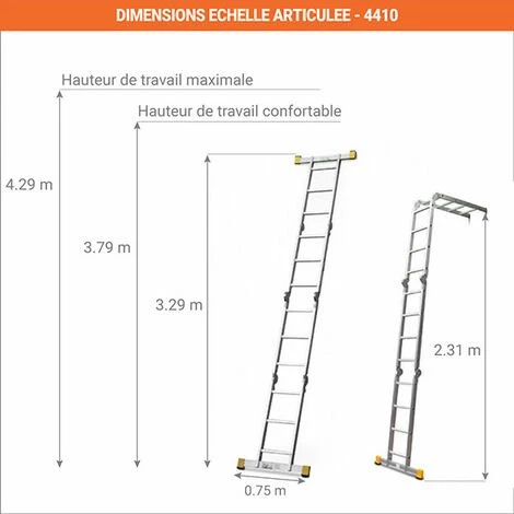 – Echelle articulée facile à stocker et à transporter car son encombrement plié est très faible.