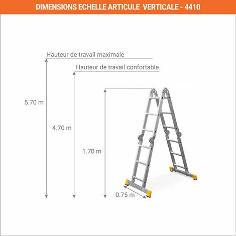 – Echelle articulée ultra stable de 4 éléments de 3 barreaux chacun.