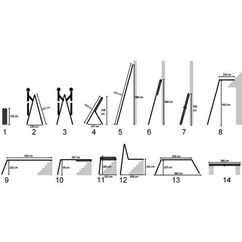- Diverses applications: escabeau, échelle d’escalier, échelle d’appui ou passerelle de travail