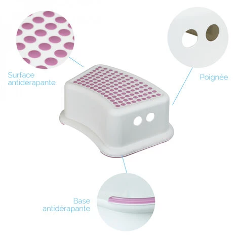 Grâce à sa base et à sa surface antidérapante, aucun risque de glissade lorsque votre enfant voudra se rendre sur les toilettes, se laver les mains et même se brosser les dents.