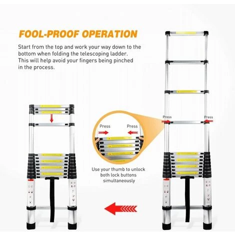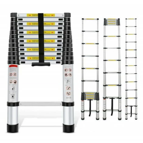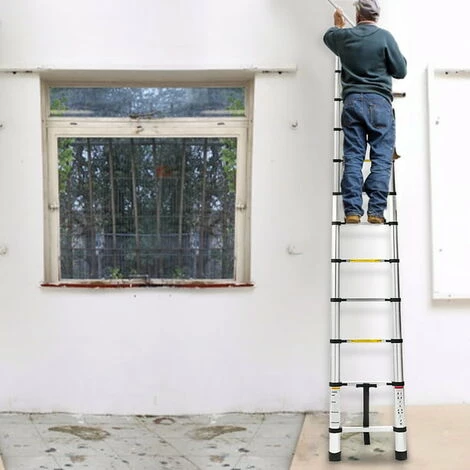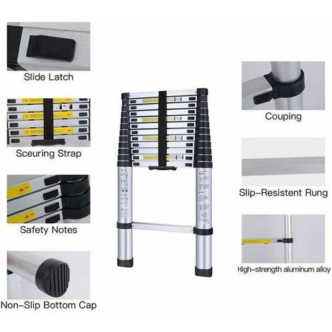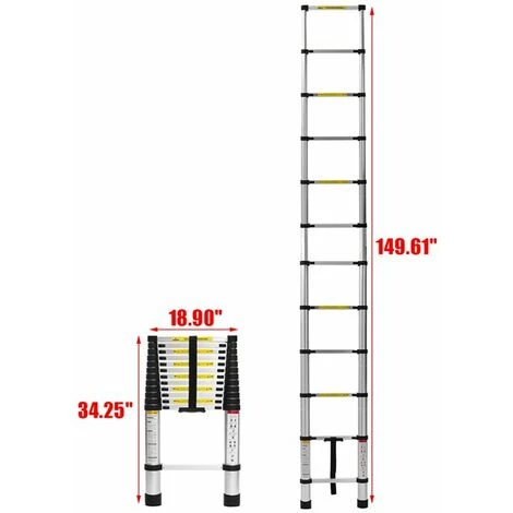 Caractéristique : mise à niveau du type de stabilité Extension unique et mécanisme de verrouillage avec boutons de pouce. Chaque section est conçue pour s’ouvrir et se fermer en toute sécurité. Sûr et fiable. Traitement soigné, design délicat et performances portables. Deux poignées sur chaque échelon garantissent que vos mains sont dans la bonne position pour éviter les pincements. Embouts inférieurs et pieds inclinés pour fixer facilement l’échelle au mur et au sol. Portable et pratique Léger et compact, facile à transporter et à ranger ; Une sangle de verrouillage robuste sécurise solidement l’échelle et est facile à transporter d’une seule main. Conception antidérapante Pédales sûres et stables conformément aux normes de conception antidérapantes. De haute qualité et en bon état, échelle en aluminium ultra légère, durable à utiliser. Gratuit pour une autre paire de repose-pieds antidérapants