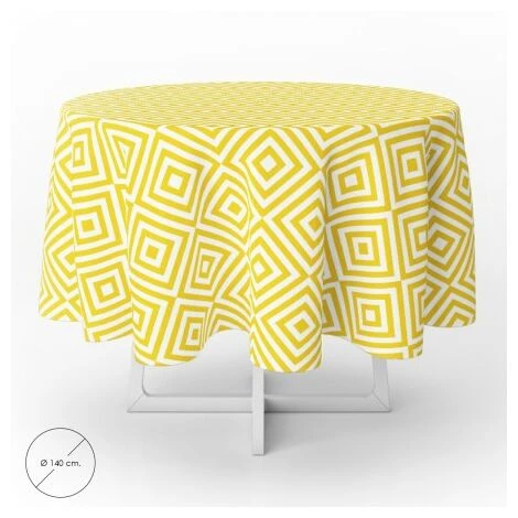 Tovaglia Gomma Rotonda Diamanti Gialli Impermeabile PVC Antimacchia Ø140 cm.