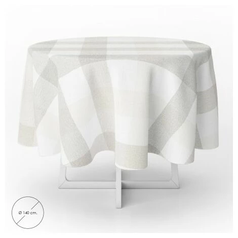 Tovaglia Gomma Tonda Quadri Beige Impermeabile PVC Antimacchia Ø 140 cm.