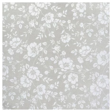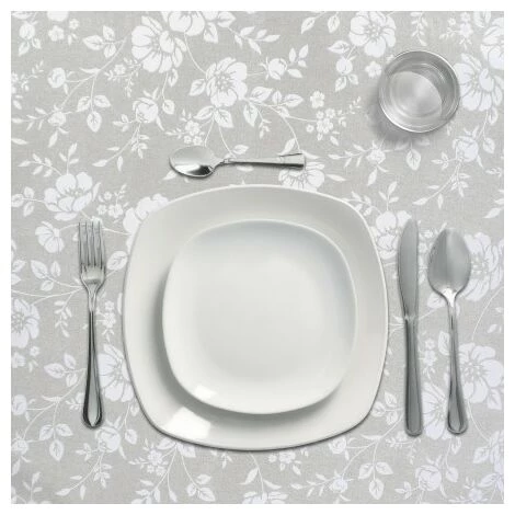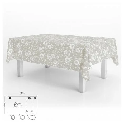 – Tovaglia in gomma stampata in grigio con forme a fiore bianco. Design moderno ed elegante per ogni occasione.