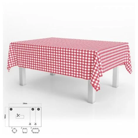 Tovaglia Rettangolare In Gomma Quadrati Rossi Impermeabile PVC Antimacchia 140×250 cm.