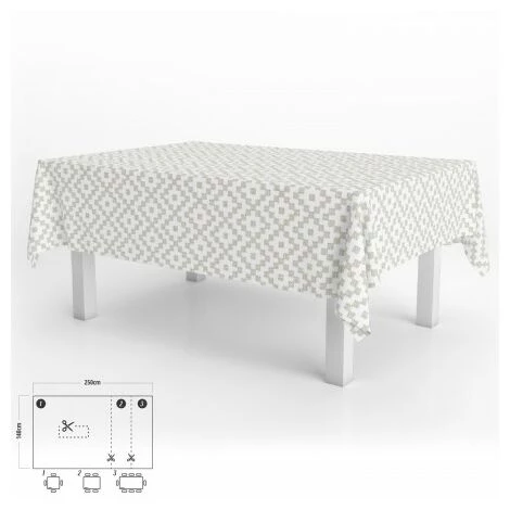 – Tovaglia in gomma stampata in bianco con forme a zigzag grigie. Design moderno ed elegante per ogni occasione.