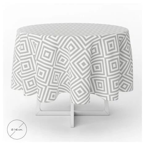 Tovaglia Rotonda Gomma Grigio Diamanti Impermeabile PVC Antimacchia Ø140 cm.