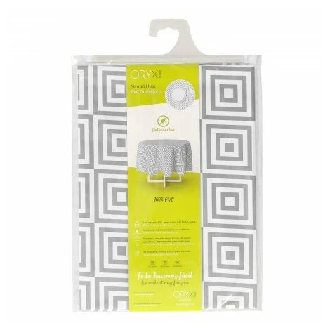 – Tovaglia in gomma stampata in bianco con forme a rombo grigio. Design moderno ed elegante per ogni occasione.