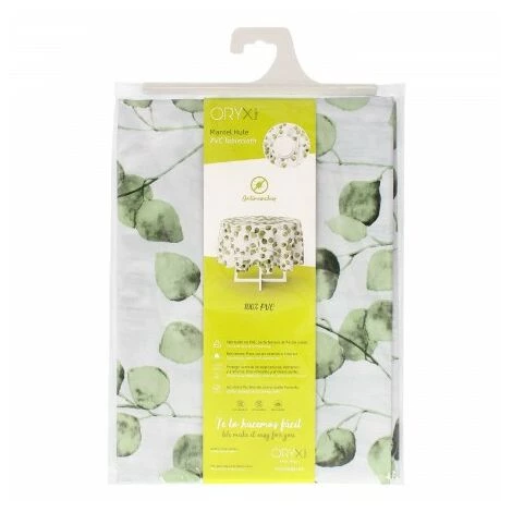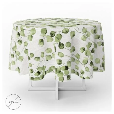 Tovaglia Rotonda Gomma Verde Foglie Impermeabili Antimacchia PVC Ø140 cm.