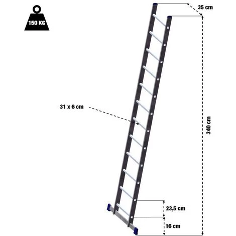 - Assurez tous vos travaux en hauteur grâce à cette échelle simple d’une hauteur de 3,40 mètres.