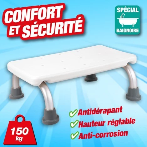 Pour faciliter et sécuriser l’utilisation de la baignoire ou de la douche, équipez vous de ce marche pied antidérapant.