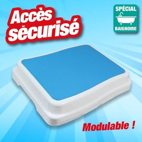 Ce marchepied facilite lentrée dans la baignoire pour les seniors. Le marchepied met également le siège des toilettes ou le lavabo à la portée de lenfant. Le marchepied est sécurisé et stable grâce à sa grande surface antidérapante. Les modules sont emplilables les uns sur les autres pour augmenter la hauteur de la marche : hauteur additionnelle de 5 cm par module Possibilité également de créer un escalier. Idéal pour la Gamme sénior dans l’univers de la salle de bains.
