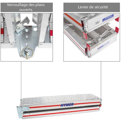 – Arrêt par crochet : fermeture rapide et sûre des deux plans séparés par un levier de sécurité.