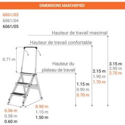 ESCABEAU DIRECT – MATISERE Marchepied Alu 3 Marches – Hauteur De Travail Maximale 2.70m – MPP3