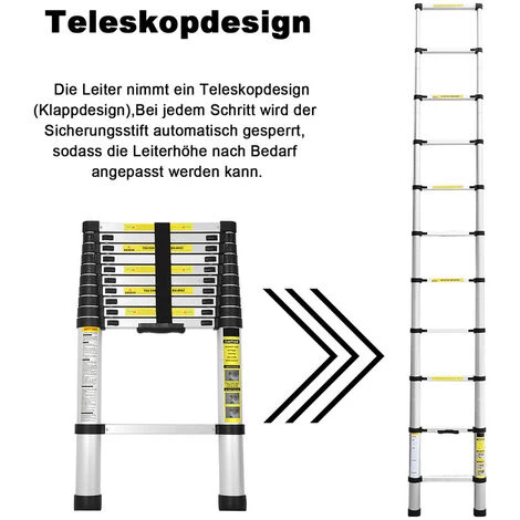 ▲Conception télescopique : L’échelle adopte une conception télescopique, la goupille de verrouillage est automatiquement verrouillée à chaque marche et la hauteur de l’échelle peut être ajustée en fonction de vos besoins.
