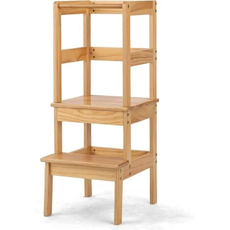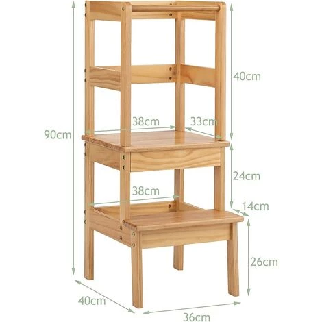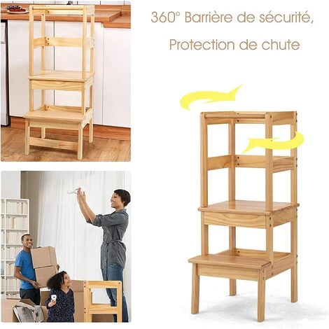 Le rêve se réalise avec ce produit. Par 2 marches, les petits monte sur le palier de l’escabeau à hauteur de lavabo ou de table, ils ainsi font le brossage ou lavage tout seul. Bonne chance à accoître leur autonomie. En même temps, ils se forme à l’art de cuisine lors de l’observation sur la tour. Quant à la sécurité, la barrière, les pétales larges et la fabrication en bois…