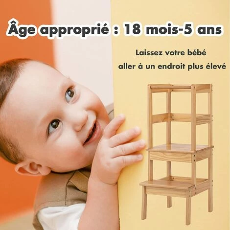 - ★ASSITANT D’INDÉPENDANCE★ Grâce à l’escabeau de grandir, le tout-petit monte et se tient plus haut, il peut atteindre la plaque et ses jouets et livres sont alors à portée de main. Avec ce prodium, les enfants font les efforts sans aide des grands, ce qui profite bien au développement de leur confiance et indépendance.