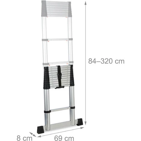 – Echelle télescopique ouvrable jusqu’à 3,2 m avec 11 marches