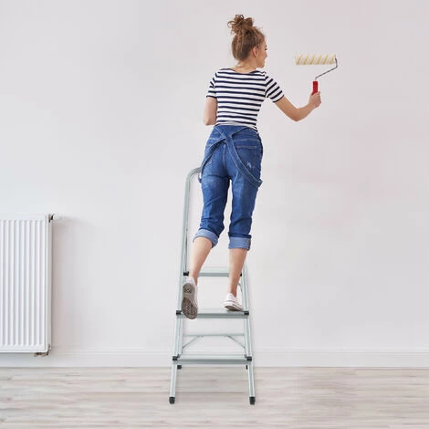 Vous voulez changer une ampoule, repeindre les murs ou encore nettoyer le dessus de votre étagère ? Alors cet escabeau est fait pour vous ! Ses marches antidérapantes et son garde-corps pratique empêchent toute chute. Ses embouts en plastique protègent le sol contre les rayures. Après son utilisation, l’escabeau peut être plié puis, grâce á son poids léger, transporté si besoin.
