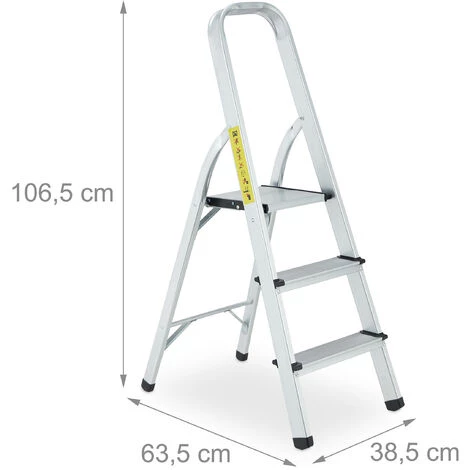 – Dimensions de l’escabeau à 3 marches lorsque plié H x L x P : env. 113 x 38,5 x 12,5 cm