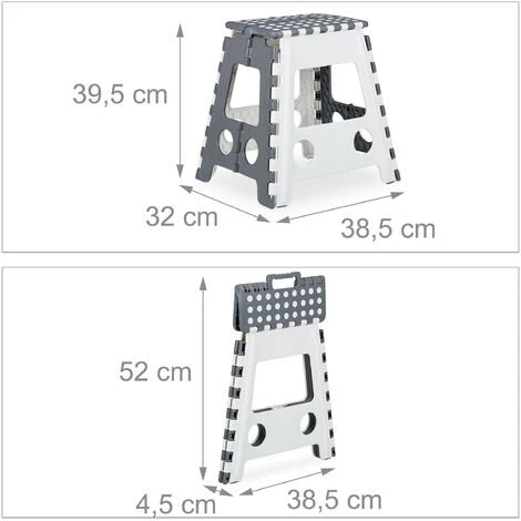 Obtenez un accessoire universel pour votre maison avec ce tabouret pratique. L’escabeau pliant est déplié en un instant et vous aide à atteindre les rangements de hautes étagères ou armoires. Les enfants ont aussi ainsi un accès plus simple au lavabo ou aux toilettes avec le tabouret. Les picots en caoutchouc antidérapants assurent ainsi pour une sécurité à tous moments. Lorsque le tabouret bas n’est pas nécessaire, il peut être plié pour un gain de place et être rangé.