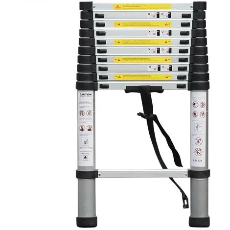 Échelle télescopique 3,2m. Pratique et solide, cette échelle télescopique en aluminium est un outil indispensable pour la réalisation de vos travaux quotidiens. Légère, vous pourrez la transporter facilement et atteindre la hauteur souhaitée grâce à son déploiement aisé et sans effort.